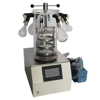 臺式凍干機(1臺)、真空泵(1臺)2XZ-2/2XZ-4可選、玻璃罩(1個(gè),含壓蓋裝置)、不銹鋼樣品架(1個(gè))、不銹鋼樣品盤(pán)(3個(gè))、真空連接管(1根)、橡膠閥(8個(gè))、凍干瓶(8支)、茄形瓶規格:100ml、250ml、500ml、1000ml(可選)